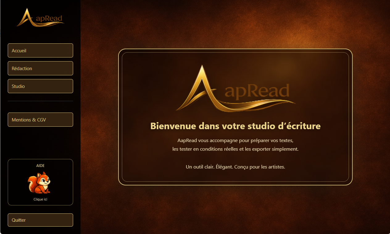 AapRead propose un environnement simple et utile, orienté vers la lecture assistée et la préparation scénique.